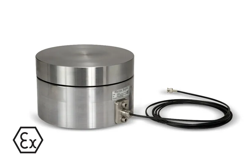 Robust digital ATEX and IECEx certified heavy duty compression load cell produced in stainless steel and hermetically sealed to IP68 for installation under large silos, tanks, vessels and heavy duty applications. The CH-Ex load cell can be used in ATEX (Ex) IECEx and non-ATEX applications.